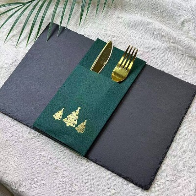 আধুনিক ন্যাপকিন ডিজাইনের সবচেয়ে দৃষ্টিনন্দন বৈশিষ্ট্যগুলির মধ্যে একটি হল সিলভার ক্রিসমাস ট্রি হট স্ট্যাম্পিং এর প্রয়োগ। এই আলংকারিক পদ্ধতিটি ধাতব ছাপ সহ ন্যাপকিনের পৃষ্ঠকে উন্নত করে, তাদের একটি প্রতিফলিত, উত্সব চকচকে দেয়। বড়দিনের ভোজ এবং ছুটির ডিনারের সময়, এই ধরনের ডিজাইনগুলি যোগ করে: